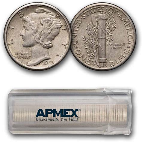 1943 D Mercury Dime 50 Coin Roll Avg Circ