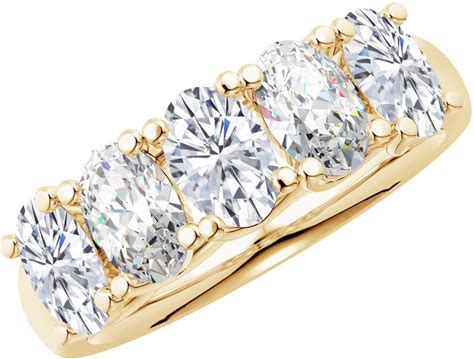 Houston Diamond District 1 To 6 Carat Oval Cut 5 Five Stone LAB GROWN Diamond Wedding Anniversary Stackable Ring Wedding Band (E/F Color, VS Quality)