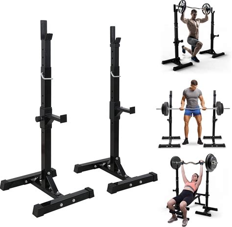 Paylesshere 550LBS Adjustable Squat Rack 40"-66", Sturdy Steel Squat Barbell Stand With Bench Press Holder For Home Gym, Portable Weight Rack