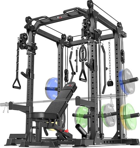 YOLEO Smith Machine & Squat Rack Combo, Multi-Functional Power Racks With Adjustable Width & Pull-Up Bar, Cable Crossover Power Cage, Independent