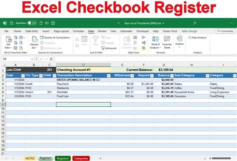 Register - Free Excel Checkbook