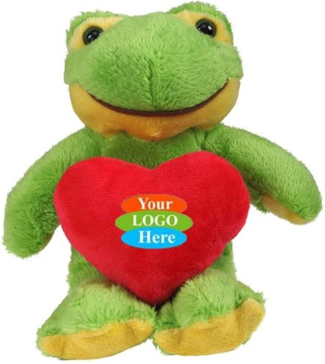 Custom 12 Pack - Soft Plush Frog With Heart 8" - Custom Printed - Promotion Choice