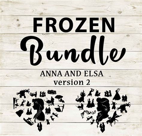 Frozen Bundle | Anna And Elsa Version 2 Clipart Silhouette | Heart Design Artwork | Instant Digital Download | Jpg Png Pdf Svg Files