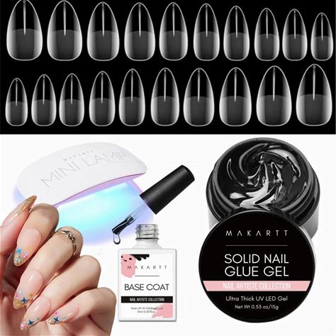 Makartt Gel X Nail Kit , Solid Nail Glue Gel With 500Pcs Half Matte Almond Nails Tips & U V LED Nail