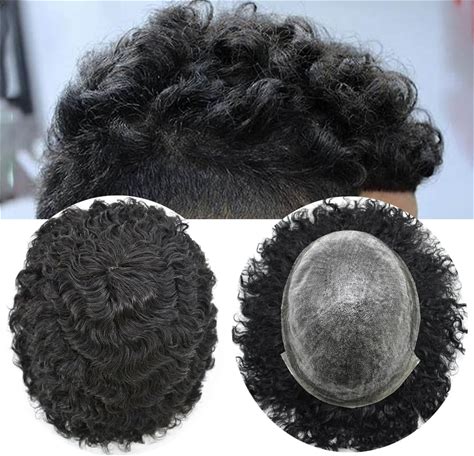 Afro Curl Toupee For Black Men Size 10"X8" Full Poly African American Human Hair System All Injected PU Skin Hairpiece Replacement Kinky Curly Mens