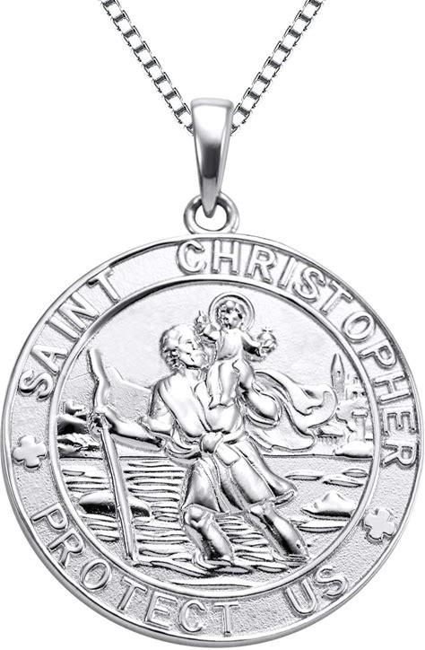 YL St Christopher Necklace Solid 925 Sterling Sliver Engraved Pendant Round Religious Talisman Jewelry For Women