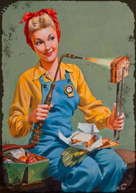 Sylty Vintage Look Metal Sign 8X12 Inch 1940S Pin-Up Girl Rosie Welding Lunch Retro Art Pin Up Wall Decor Tin Signs