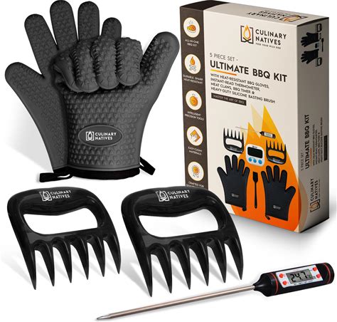Smoker Gloves And Meat Claws | No.1 Heat Resistant BBQ Grill Gloves | Meat Shredder Claws | Thermometer | Silicone Smoker Oven Mitts & Pulled Pork