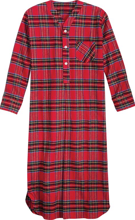 Men's Portuguese Cotton Flannel 47 Inch Nightshirt - Red Stewart - Large - The Vermont Country Store