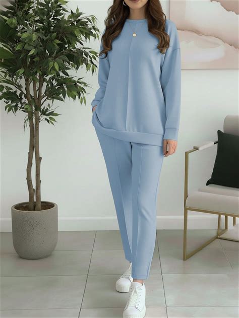 Women's Casual Solid Color Minimalist Crew Neck Long Sleeve Top, Paired With Women's Fashion Casual Solid Color Minimalist Crew Neck Long Sleeve Top, Suitable For Spring And Autumn Wear.,M