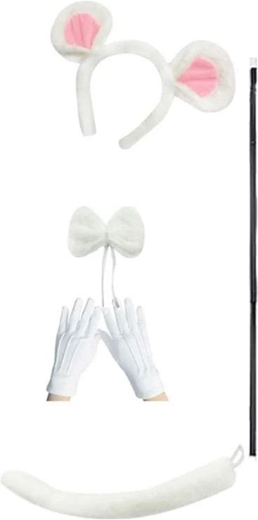 Mouse Costume Set Mouse Ear Headband Tail Nose Bow Tie Gloves Set Cosplay Costume Accessory For