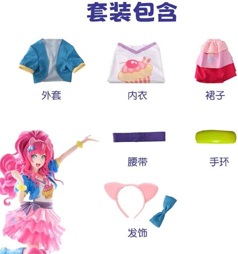 Anime Little Pony Pinkie Pie Cosplay Costume Fashion Uniform Suit Outfit Halloween Christmas Party