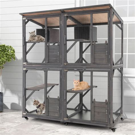 Large Cat Catio Outdoor 4 Tiers Walk-In Cat Enclosure Window Access, Cat Cage Cat House For Multiple