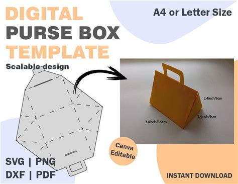 Purse Box Paper Template, SVG DXF PDF Png Formats, Paper Gift Wrap Template, Paper Packaging Box, Paper Template, Paper Cut Files Svg Png