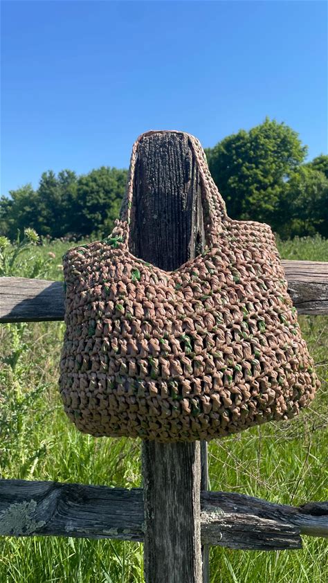 Crochet Tote Bag Plarn Eco Friendly Gift Crochet Beach Bag Boho Crochet Purse Recycled Plastic Chrochet Market Bag Hippie Hand Bag Gift