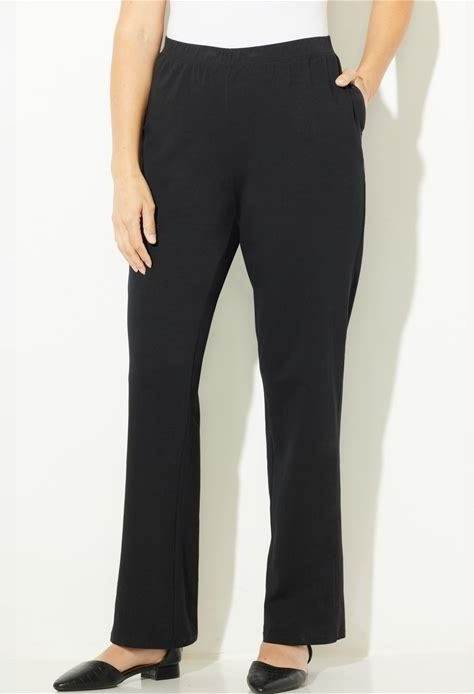 Plus Size Women's Crease Front Knit Pant By Roaman's In Black (Size 12 W) Pants