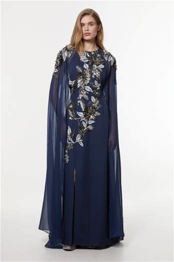 Karen Millen Floral 3D Cape Sleeve Maxi Dress In Navy At Nordstrom, Size 10