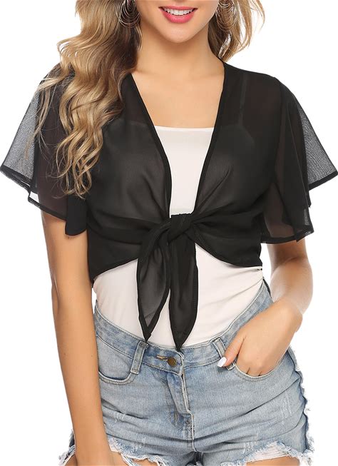 Iclosam Women Tie Front Chiffon Shrug Short Sleeve Cropped Sheer Bolero Shrug Cardigan