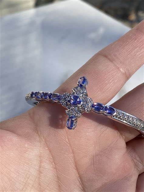 Platinum Over Sterling Silver Tanzanite & White Zircon Hinged Cuff Bangle SHOPHQ