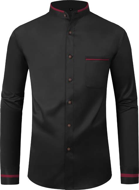 Mandarin Collar Dress Shirt For Men Clergy Shirt Collarless Button Down Business Casual Shirts