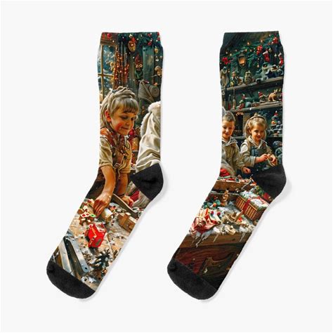Santa And Elf Crafting Holiday Magic Socks