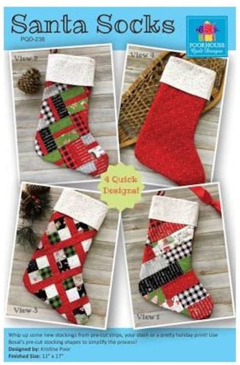 Santa Socks- Stocking 11" X 17"- Pattern And Pre Cut Batting- Craft Kit (Inv 560002)