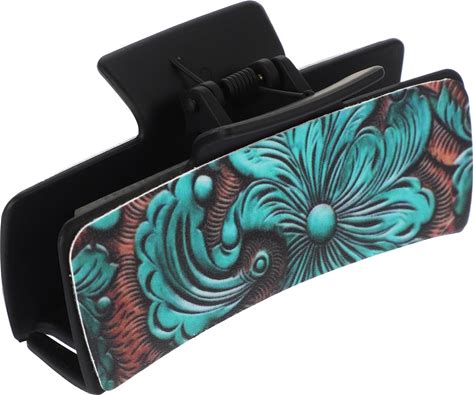 Minkissy Western Hair Claw Clips PU Leather Turquoise Pattern Claw Clips Square Jaw Clipsponytail Holder Aesthetic Hair Accessories For Women Girls,