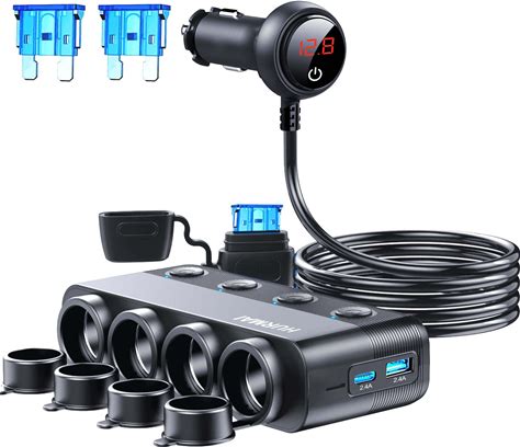 Musicozy Car Cigarette Lighter Adapter Splitter, 9 in 1 Cigarette Lighter USB Charger 3 Socket USB C Car Charger Adapter With Voltmeter 12V/24V Plug O
