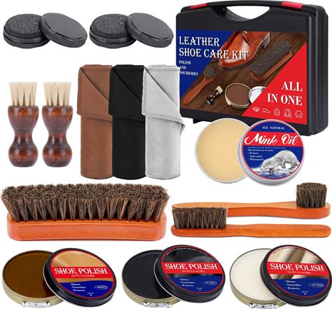 TUXIYA 15Pcs Shoe Shine Kit, Shoe Polish Kit, Leather Boot Care Kit, With Horsehair Brush&Wooden Applicator - Portable Travel Shoe Polish Kit For