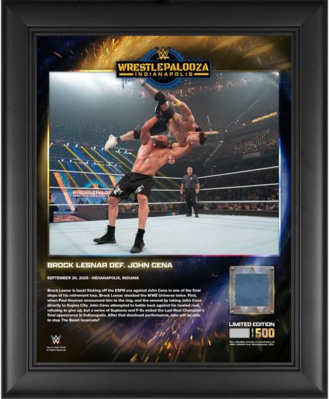 Brock Lesnar WWE Framed 13" X 16" Wrestlepalooza 2025 Collage With A Piece Of Match-Used Canvas - Limited Edition 500