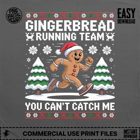 Gingerbread Man Digital PNG, Christmas Running Team Design, Commercial Use Image