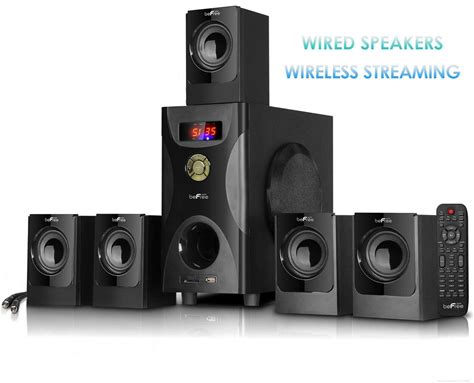 Acoustic Audio By Goldwood Bluetooth 5.1 Surround Sound System With LED Light Display, FM Tuner, USB And SD Card Inputs - 6-Piece Home Theater Speaker Set, Includes Remote Control - AA5400 Black