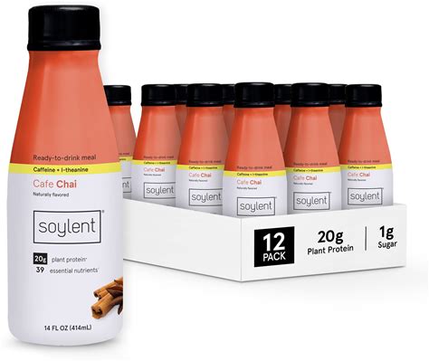 Soylent Complete Nutrition Gluten-Free Vegan Protein Meal Replacement Shake, Cafe Chai, 14 Oz, 12 Pack
