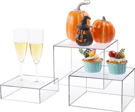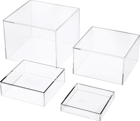 Set Of 4 Crystal Clear Acrylic Boxes Cube Display Buffet Nesting Risers With Hollow Bottoms