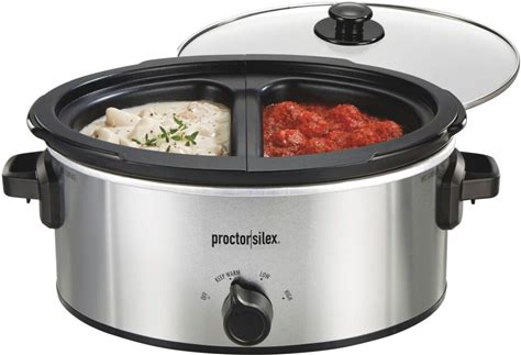 Hamilton Beach Double Dish Slow Cooker With 6Qt Crock And Dual 2.5Qt Nonstick Insert To Cook Two Meals At Once, Serves 7+ People, Dishwasher Safe Pot Lid, Black (33569)