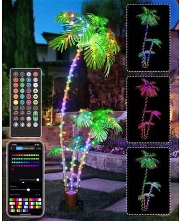 Ledido 7ft Solar Lighted Palm Tree For Outside Patio, 180LED Light Up Palm Tree Outdoor With Remote Timer, 8 Modes Led Coconut Tree Lights Plug In For Pool, Home, Indoor, Christmas Decor(Warm White)(Color Changing(Plug)/5Ft)