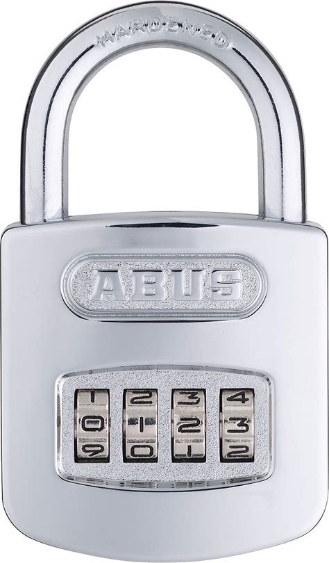 ABUS 160/50HB50 Weatherproof Resettable Chrome Combination Padlock, 4 Dial, With 2" Long Shackle