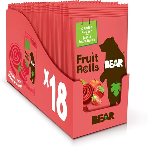 BEAR Real Fruit Snack Rolls - Gluten Free, Vegan, And Non-GMO - Apple - Healthy School And Lunch Snacks For Kids And Adults, 0.7 Ounce (Pack Of 18)