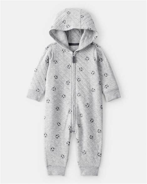 Carter's Baby Boys Boy Soccer Quilted Long-Sleeve Hooded Jumpsuit - Black 18m Grey