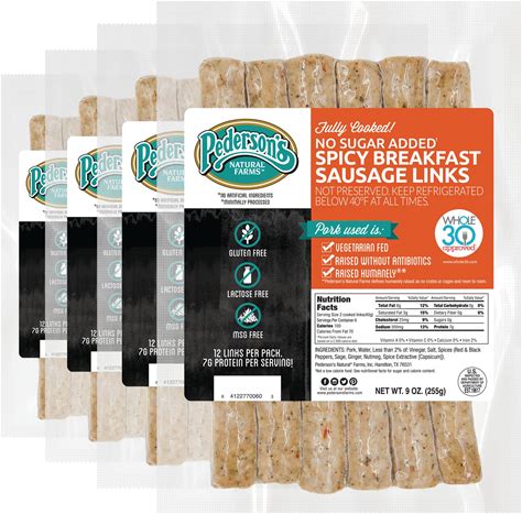 Pederson's Farms, Spicy Breakfast Pork Sausage Links, Whole30 (4 Pack, Use/Freeze) 9Oz - No Sugar Added , Fully Cooked, Keto And Paleo Diet Friendly,