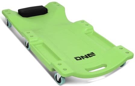 Dna Motoring Tools-00218 Low Profile Plastic Green Rolling Garage Shop Creeper With Padded Headrest Tool Trays