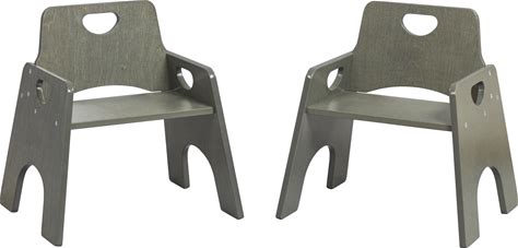 Ecr4kids Stackable Wooden Toddler Chair, 10In, Kids Furniture, Grey Wash, 2-Pack