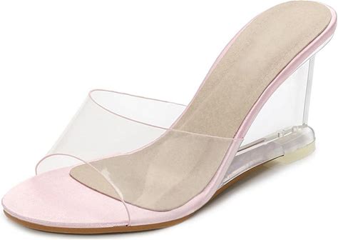 DDWRGD Women's Fashion Clear Wedge Sandals Open Toe Slip On Mules High Heel Transparent Sandals, Wedge Heels Clear Sandals For Women (Silver,6.5-7)