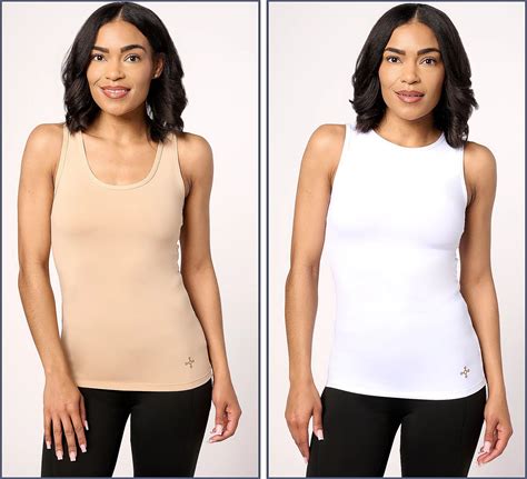 Tommie Copper Scoop & High Neck Compression Tank Tops, Size Medium, Sand/White