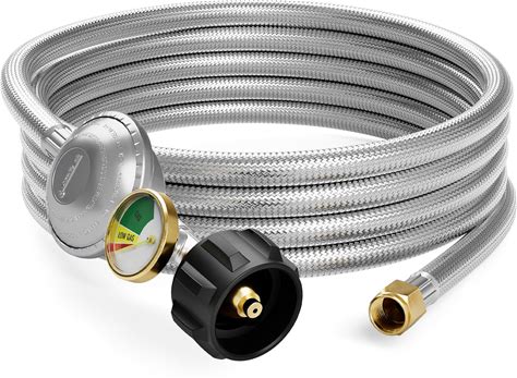 Flame King 5ft Universal QCC1 Low-Pressure Propane Regulator Steel-Braided Propane Hose Rubber | SS-QCC-3/8
