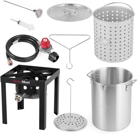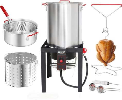 27Qt Turkey Deep Fryer Pot - Stainless Steel Crawfish Boiler With Strainer Basket Lid, Ideal For Outdoor Cooking, Campfire, And Home Use, 45Qt 63Qt Options Available