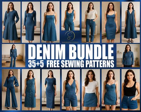 Denim 40 Patterns Bundle | PDF Digital Sewing Pattern | Denim Dress Pattern | Jean Pattern | Pattern Bundle | Gift For Seamstress