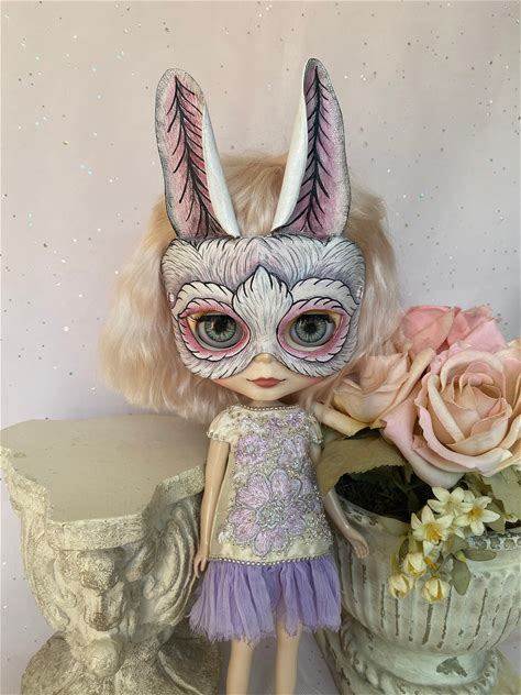 Leather Mask For Blythe Doll, White Rabbit, Mask For Doll, Doll's Mask, Doll Mask