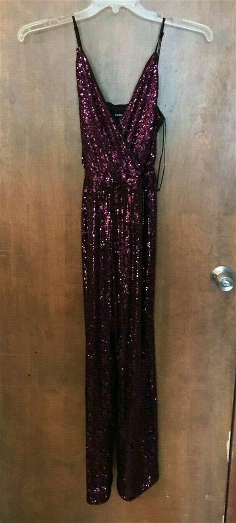 Express Women's Purple Sequin Pantsuit Small