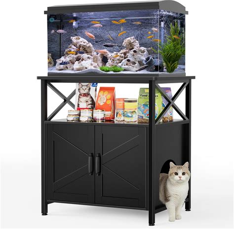 GDLF 20-29 Gallon Cat Fish Tank Stand With Cat Litter Box Enclosure Furniture, Aquarium Terrarium Stand With Shelf Storage,30.7" Lx 17.32" W Tabletop,